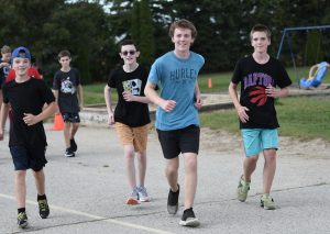 Summers Corners Public School had 421 participants who raised almost $2,000 in total in a Terry Fox Run on Friday afternoon, Sept. 26, including Alex Fehr, Gr. 7, left, Joey Scott, Gr. 8, Caiden Werkema, Gr. 8, and Landon Connor, Gr. 8, who took part as a group. (AE/Rob Perry)