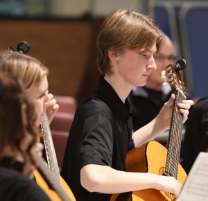 Grade 12 student Alexander Giesbrecht joined 13 other members of East Elgin Secondary School’s Guitar Ensemble for a concert on Tuesday night, Dec. 2. The ensemble includes students with varying levels of expertise, from Grade 9 through 12. They played Linus and Lucy, Tarantella Napoletana, Frosty the Snowman, Viva La Vida and a combination of Silent Night and O Holy Night. (AE/Rob Perry)