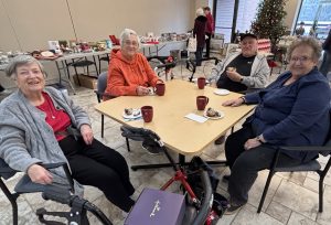 Residents like Mary Vandewyngaerde, left, Shirley Nagy, Bill Underhill and Sharon Brown enjoyed each other’s company, exchanging holiday stories and people watching at the Hollyberry Bazaar on Saturday, Dec. 6, at Terrace Lodge long-term care home. The annual holiday event is organized by the Terrace Lodge Auxiliary. (AE/ Joe Konecny)