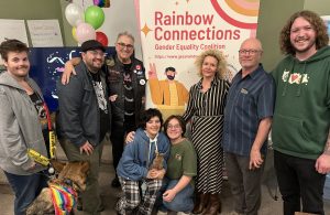 Rainbow Connections is a year-old organization based in St. Thomas dedicated to providing a safe and accepting space for 2SLGBTQIA+ youths in Southwestern Ontario. It celebrated the opening of its first physical space, a Drop-in Hub at 15 Catharine St., Unit 305 (third floor) on Wednesday night, Dec. 3. Among those participating were, from left, Murray-Issac Boyse, Devon Church, Sista Patricia, Sal Nelson, Bugg Ball, Amanda Zavitz, Neil Hubert and Austin Stover. For the full story, see the Dec. 10 edition of The Aylmer Express. (AE/Rob Perry)