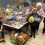 Leah Hearns, left, on a rocking horse handmade by Mark Minor of Aylmer and fellow volunteers Nancy Silverthorn, Linda Stewart, Lauren Silverthorn and Alice Schram sorted through donated toys, games and other Christmas gifts given to the Aylmer Optimist Club Toy Drive. They are to be distributed to 486 children in need in Aylmer, Malahide…