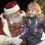 Santa Claus listened attentively to Willow Bartsch, 4, as she described wanting a toy dog for Christmas during the ceremonial holiday lighting of Memorial Park in Vienna on Saturday night, Nov. 15. She promised she’d been good all year. (AE/Rob Perry)
